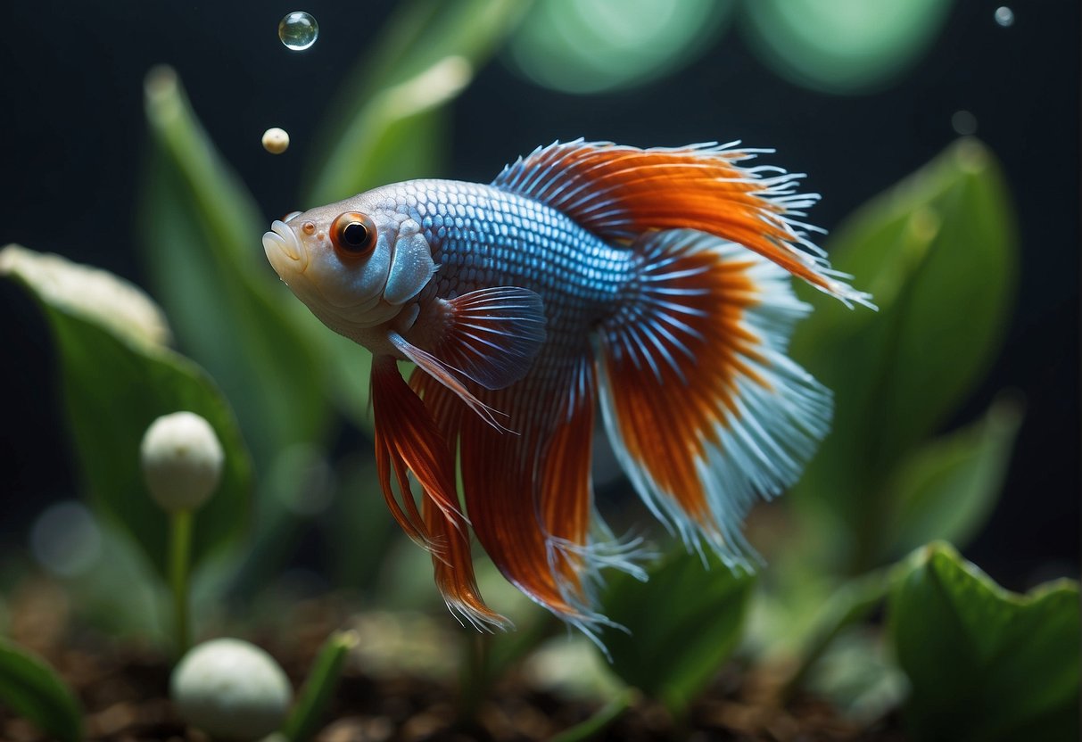Betta fish perform intricate mating rituals that may look and sometimes turn violent. The male often initiates the process, flaring his gills to impress the female with his vibrancy.